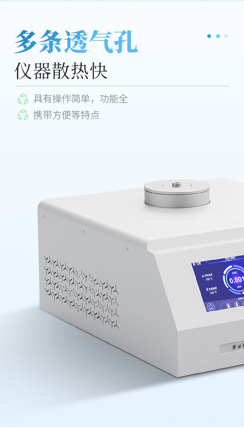 測量與熱量有關的物理、化學變化,如玻璃化轉變溫度、熔點、熔融溫度、結晶與結晶熱、相轉變反應熱,產品的熱穩定性、固化/交聯、氧化誘導期等。