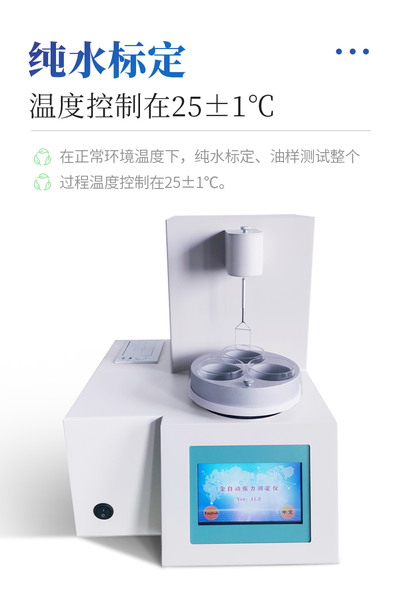 ★ 在正常環境溫度下,純水標定、油樣測試整個過程溫度控制在25±1℃。