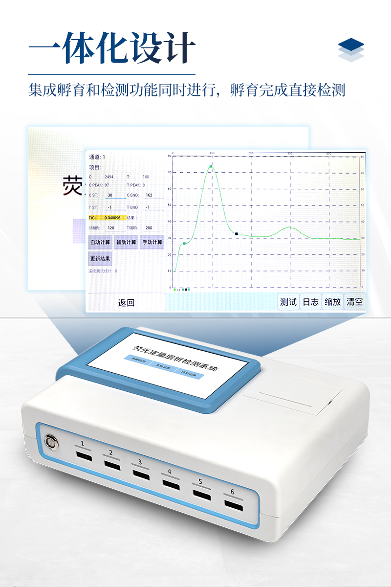 5、6通道設計,可同時進行一種或多種指標的檢測,6個獨立檢測單元,檢測效率高,并且互不干擾;