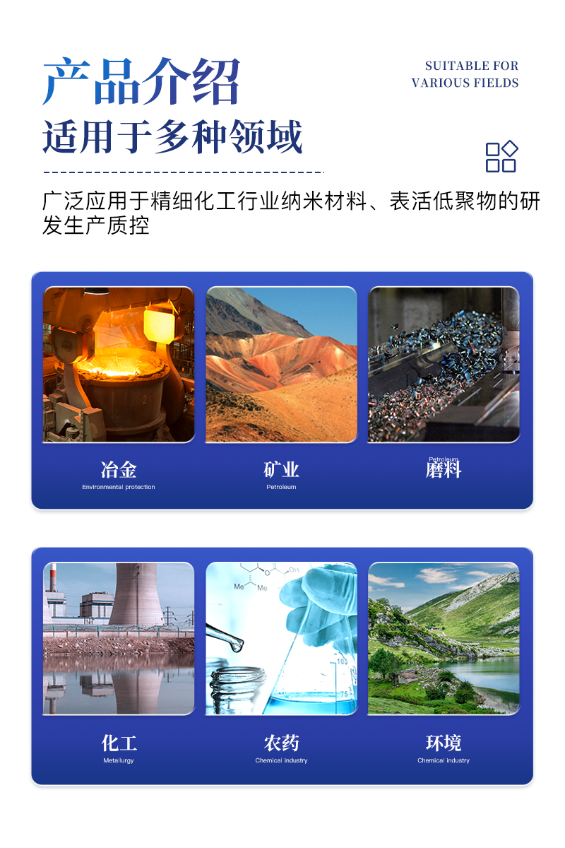 激光粒度分析儀同時具有Zeta電位及納米粒徑的分析測試功能,適用于多種不同的納米乳液、懸浮液膠體等的粒度和表面電位測量,能廣泛應(yīng)用于精細化工行業(yè)納米材料、表活、低聚物等的研發(fā)和生產(chǎn)質(zhì)控,同時也是油墨,醫(yī)藥制劑等行業(yè)產(chǎn)品研發(fā)及質(zhì)控檢測儀器。